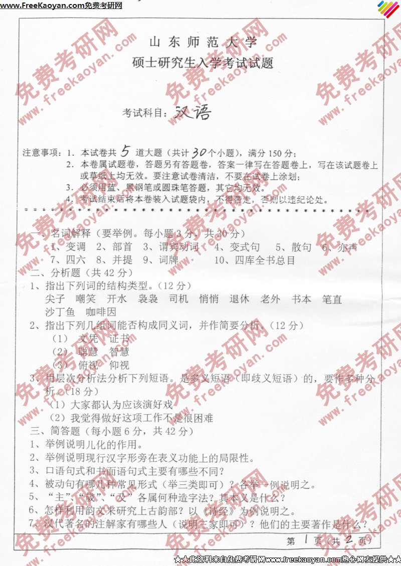 专业课考研经验 本站小编 FreeKaoyan 2018-01-23山东师范大学2005年考研真题-古文阅读