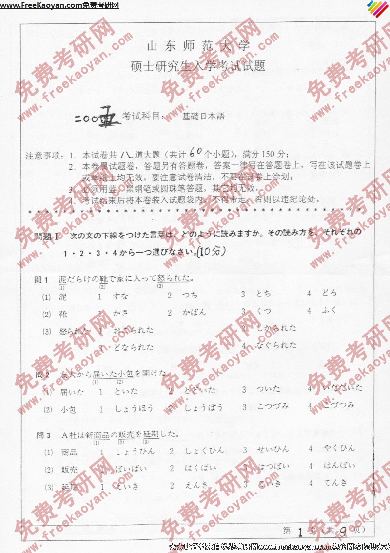 专业课考研经验 本站小编 FreeKaoyan 2018-01-23山东师范大学2005年考研真题-二外日语