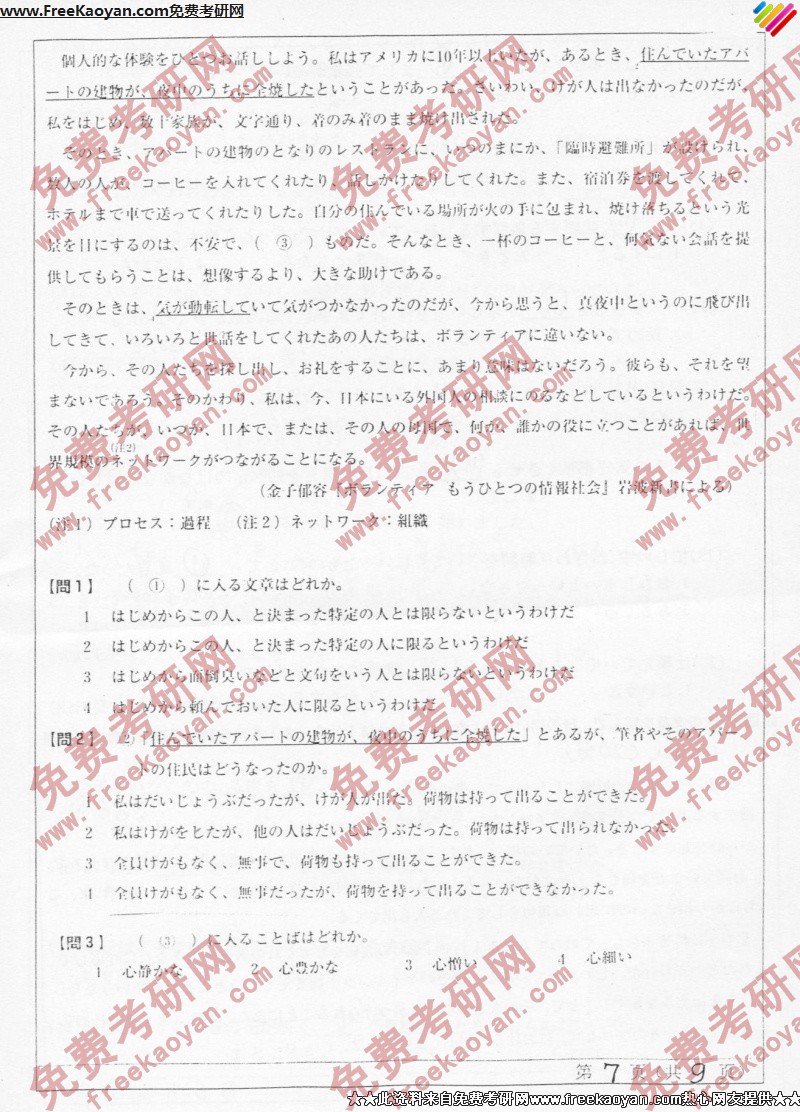 专业课考研经验 本站小编 FreeKaoyan 2018-01-23山东师范大学2005年考研真题-二外日语