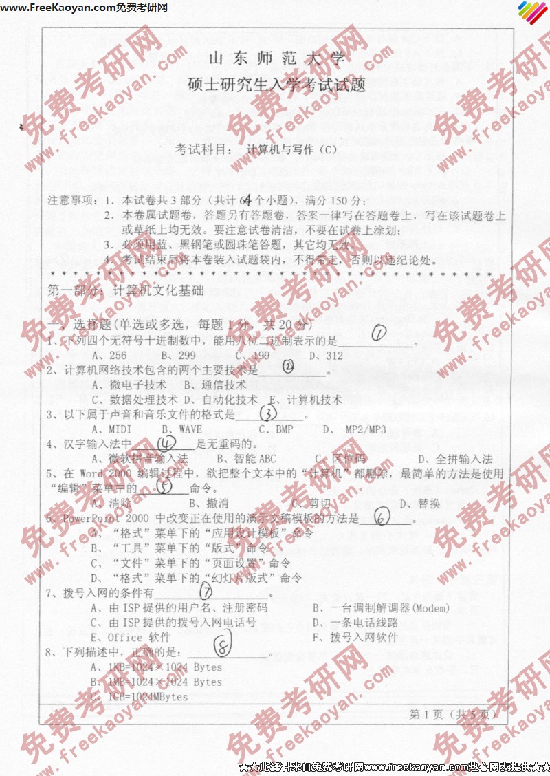 专业课考研经验 本站小编 FreeKaoyan 2018-01-23山东师范大学2005年考研真题-二外英语