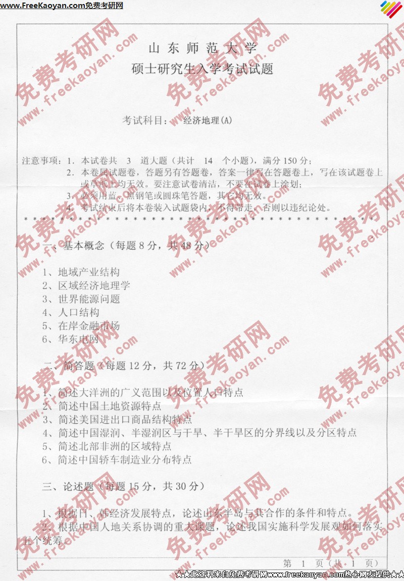 专业课考研经验 本站小编 FreeKaoyan 2018-01-23山东师范大学2005年考研真题-基础英语