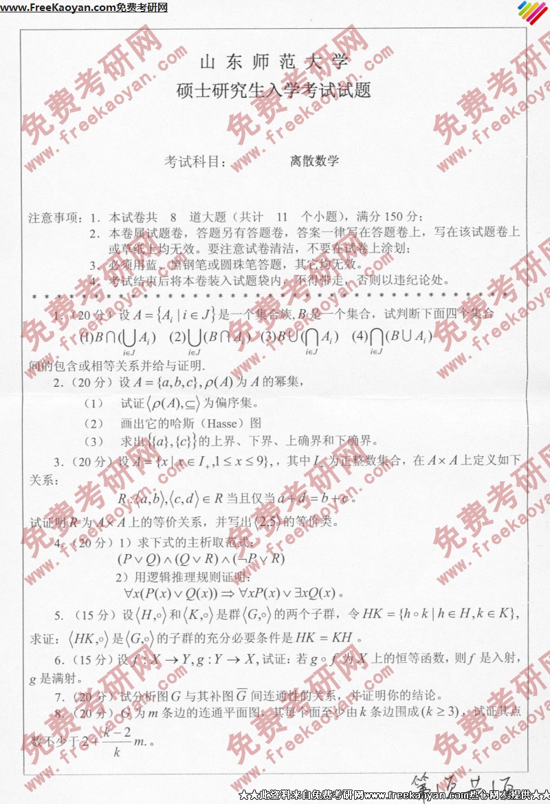 专业课考研经验 本站小编 FreeKaoyan 2018-01-23山东师范大学2005年考研真题-高等数学A