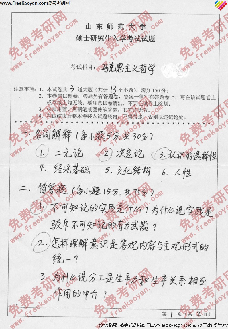 相关话题/山东师范大学 考研真题 马克思主义哲学
