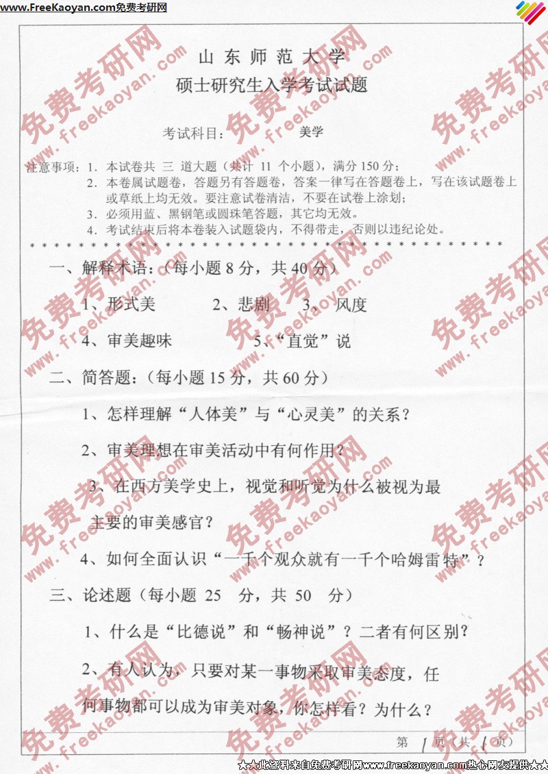 专业课考研经验 本站小编 FreeKaoyan 2018-01-23山东师范大学2005年考研真题-基础英语