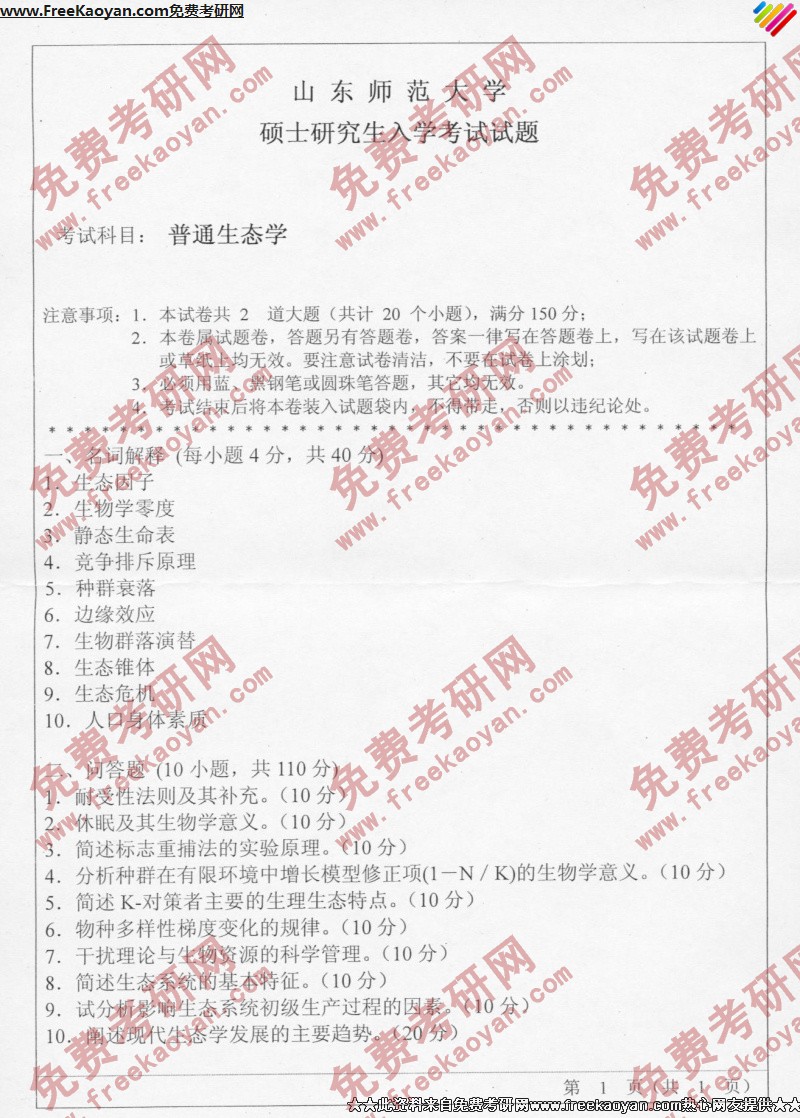 专业课考研经验 本站小编 FreeKaoyan 2018-01-23山东师范大学2005年考研真题-环境学概论