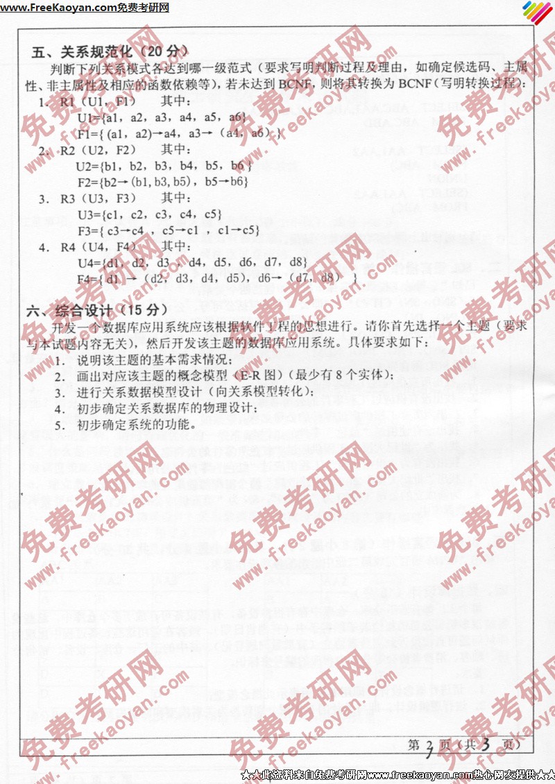 专业课考研经验 本站小编 FreeKaoyan 2018-01-23山东师范大学2005年考研真题-软件设计