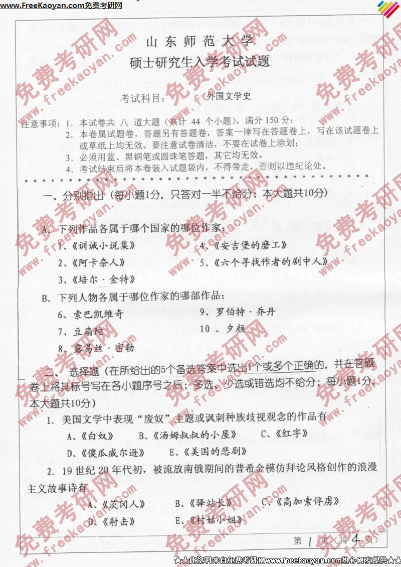 相关话题/山东师范大学 考研真题 外国文学史