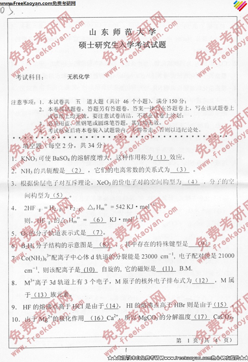 专业课考研经验 本站小编 FreeKaoyan 2018-01-23山东师范大学2005年考研真题-生物化学