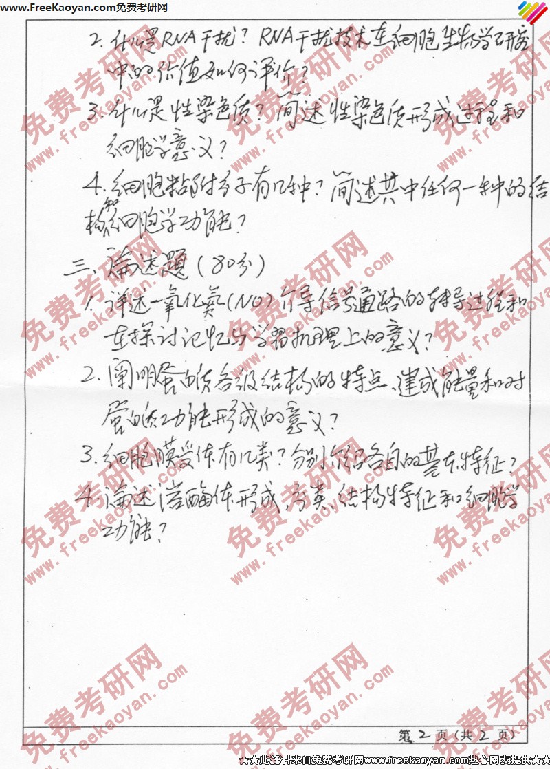 山东师范大学2005年考研真题-细胞生物学(2)