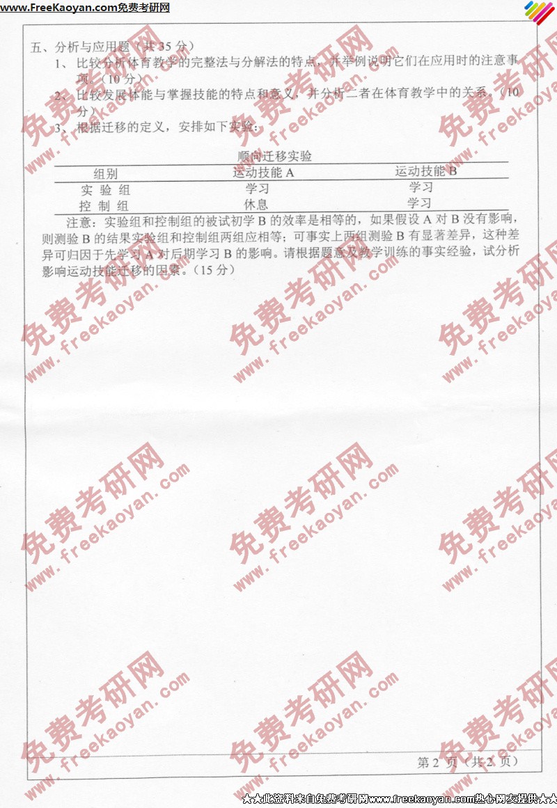 专业课考研经验 本站小编 FreeKaoyan 2018-01-23山东师范大学2005年考研真题-体育社会学