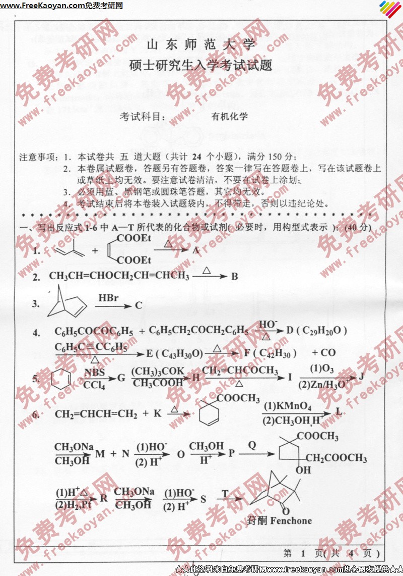 专业课考研经验 本站小编 FreeKaoyan 2018-01-23山东师范大学2005年考研真题-无机化学