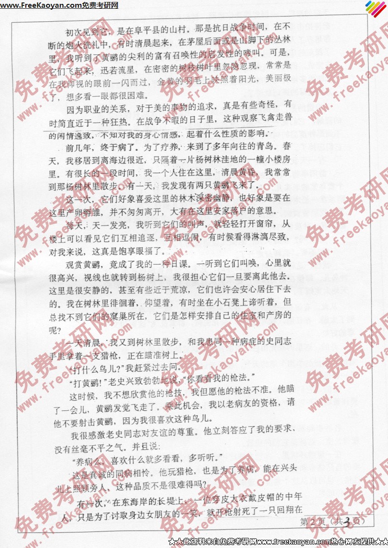 专业课考研经验 本站小编 FreeKaoyan 2018-01-23山东师范大学2005年考研真题-言学理论与写作