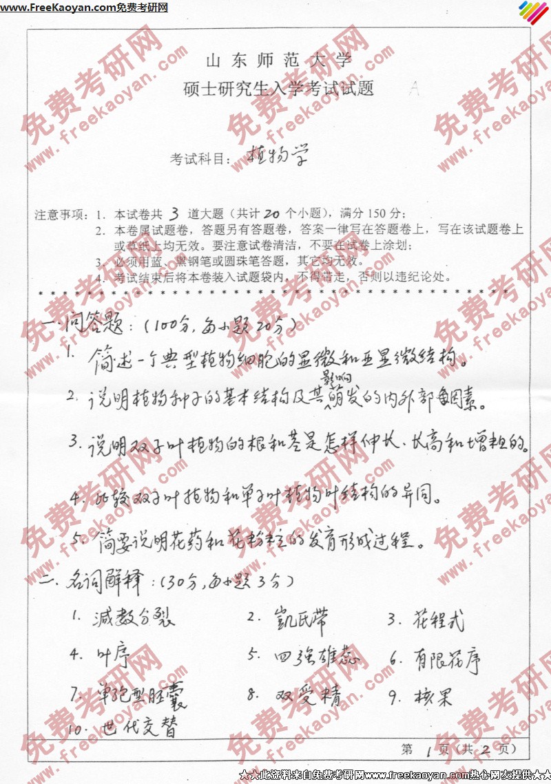 专业课考研经验 本站小编 FreeKaoyan 2018-01-23山东师范大学2005年考研真题-植物生理与遗传