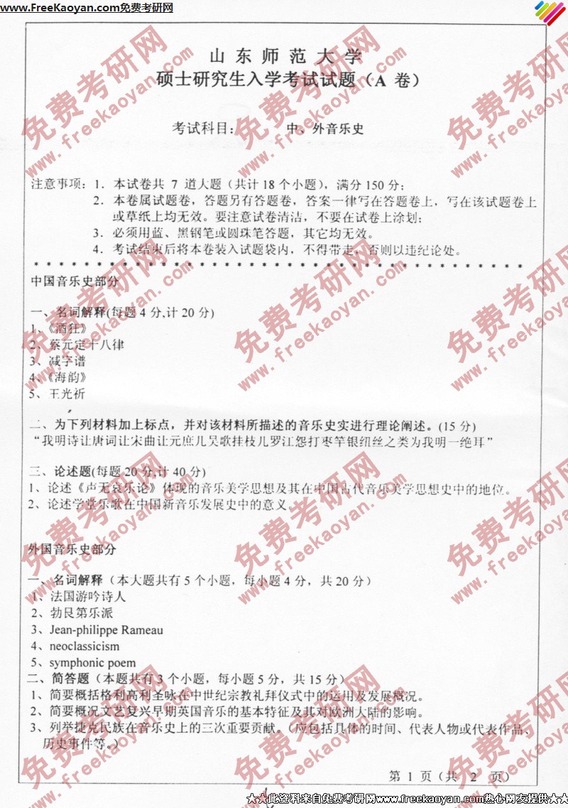相关话题/考研真题 山东师范大学 音乐史 中外