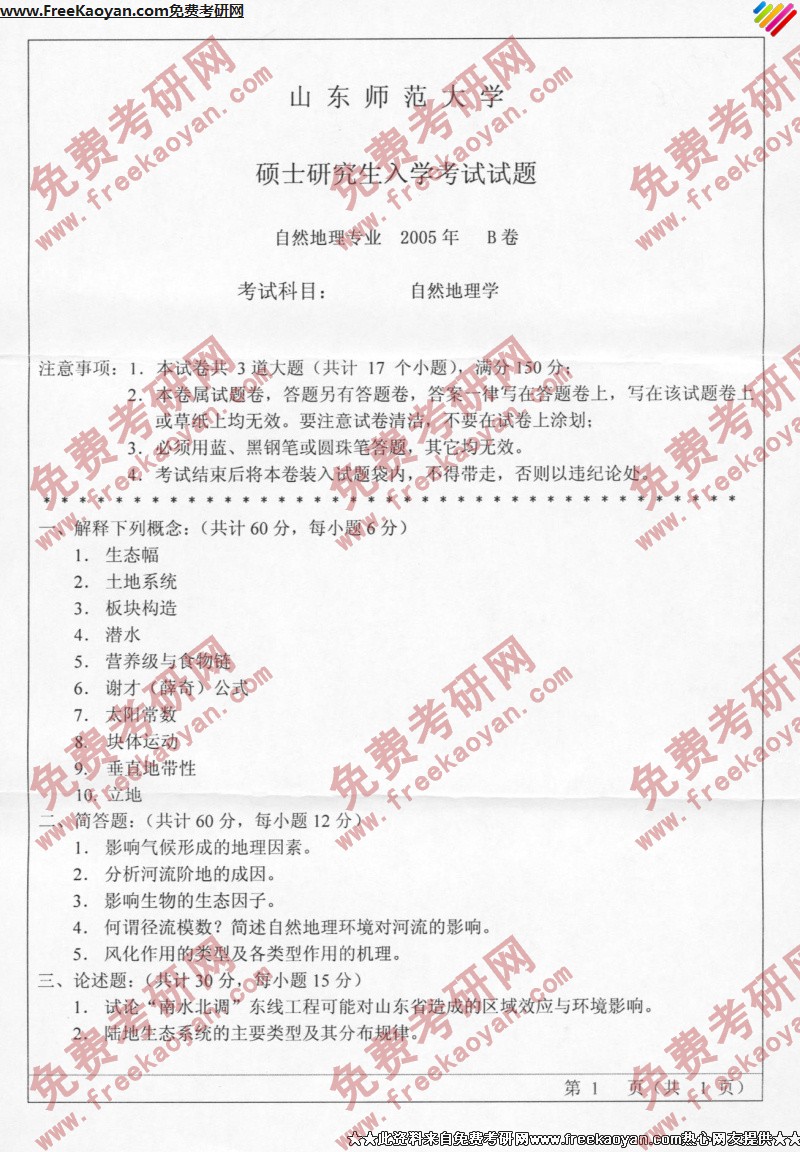 专业课考研经验 本站小编 FreeKaoyan 2018-01-23山东师范大学2005年考研真题-中国古代文学