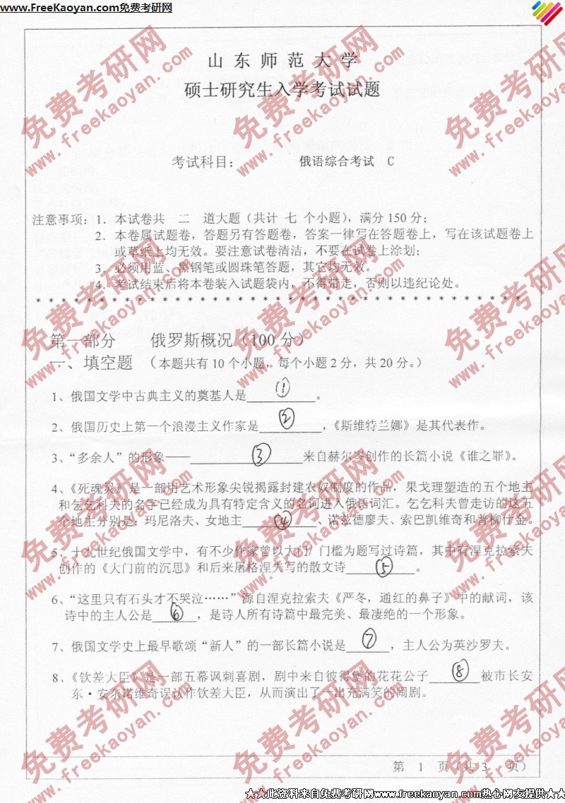 专业课考研经验 本站小编 FreeKaoyan 2018-01-23山东师范大学2005年考研真题-综合考试B