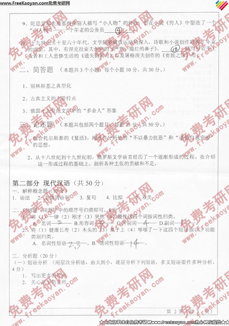 专业课考研经验 本站小编 FreeKaoyan 2018-01-23山东师范大学2005年考研真题-语言学理论与写作