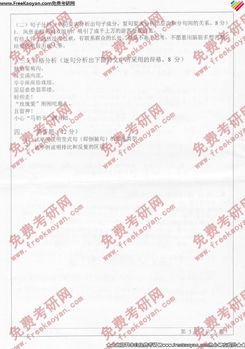 专业课考研经验 本站小编 FreeKaoyan 2018-01-23山东师范大学2005年考研真题-语言学理论与写作