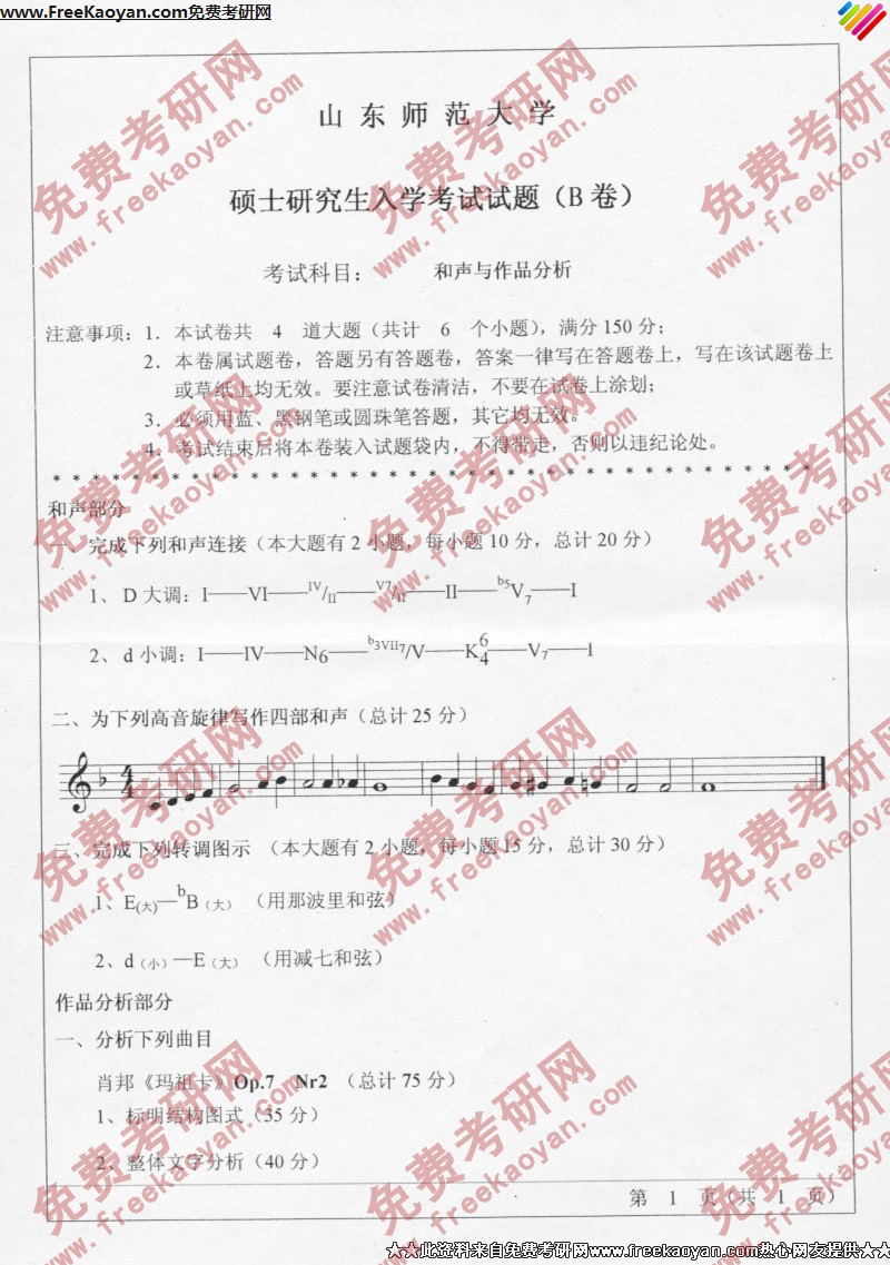 专业课考研经验 本站小编 FreeKaoyan 2018-01-23山东师范大学2005年考研真题-中外音乐史