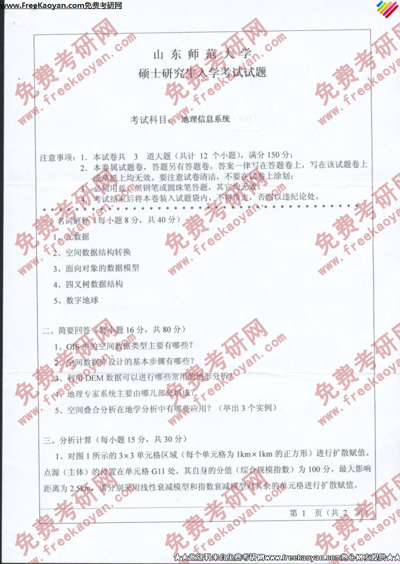 专业课考研经验 本站小编 FreeKaoyan 2018-01-23山东师范大学2005年考研真题-资源与环境学