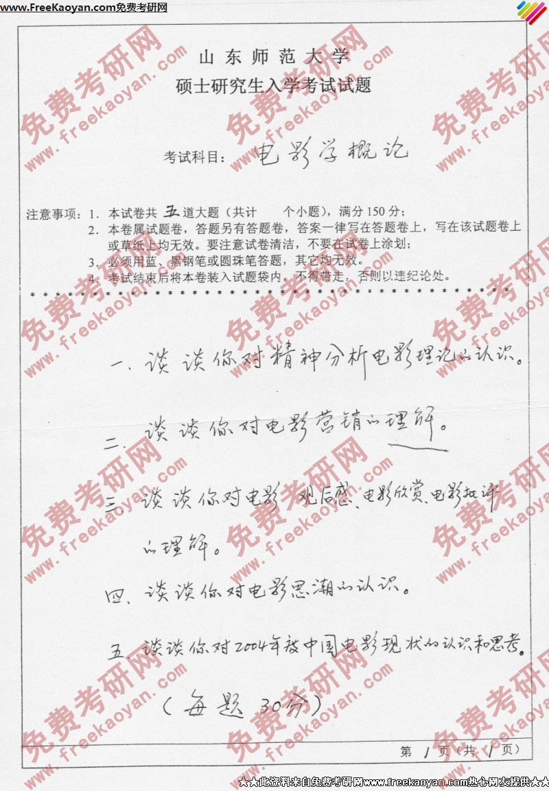 专业课考研经验 本站小编 FreeKaoyan 2018-01-23山东师范大学2005年考研真题-综合考试A