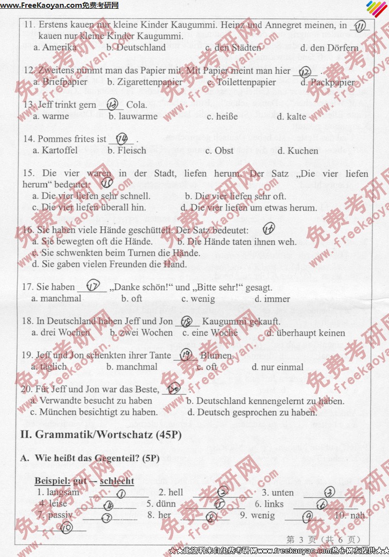 专业课考研经验 本站小编 FreeKaoyan 2018-01-23山东师范大学2005年考研真题-综合考试A