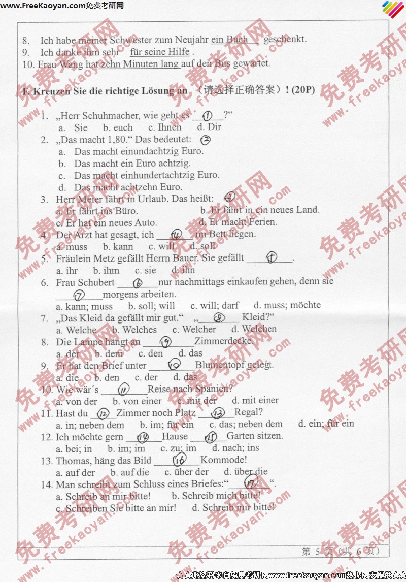 山东师范大学2006年考研真题-二外德语(5)