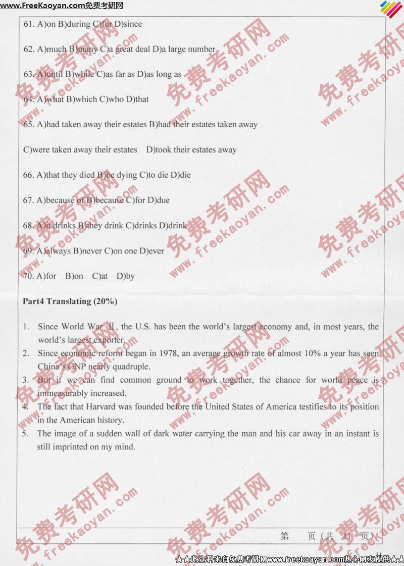 山东师范大学2006年考研真题-二外英语(11)