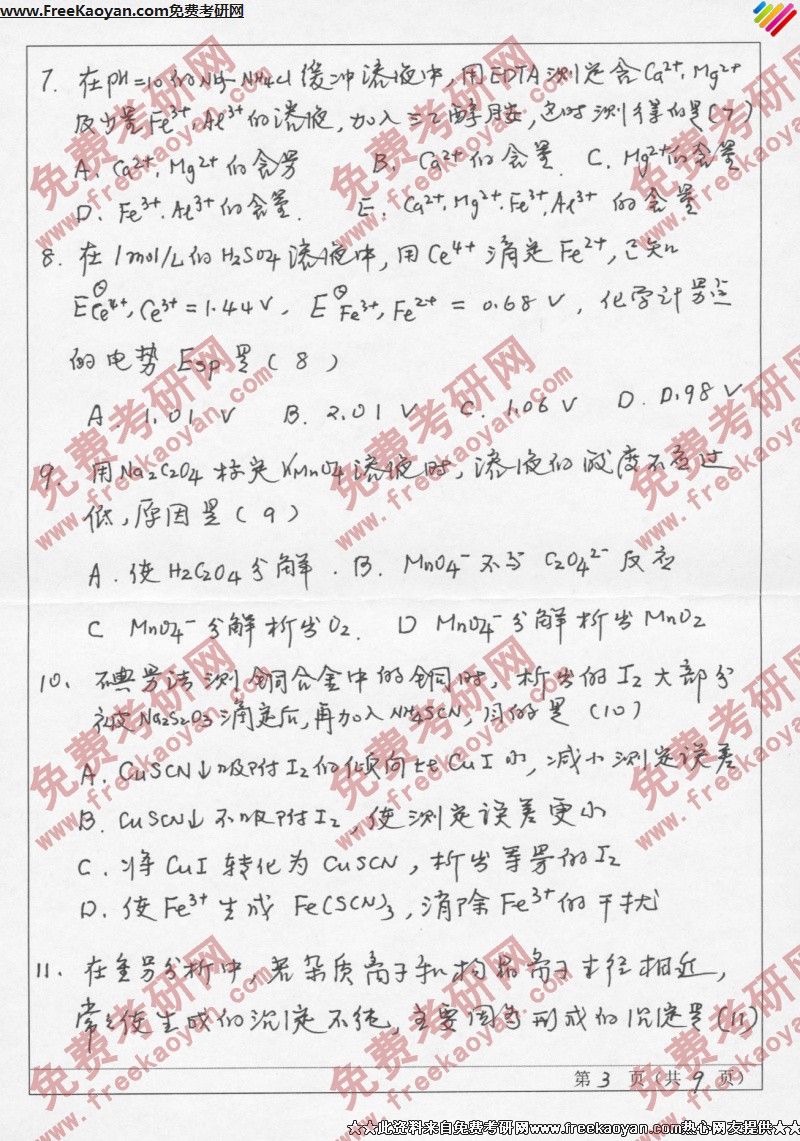 相关话题/山东师范大学 考研真题 分析化学