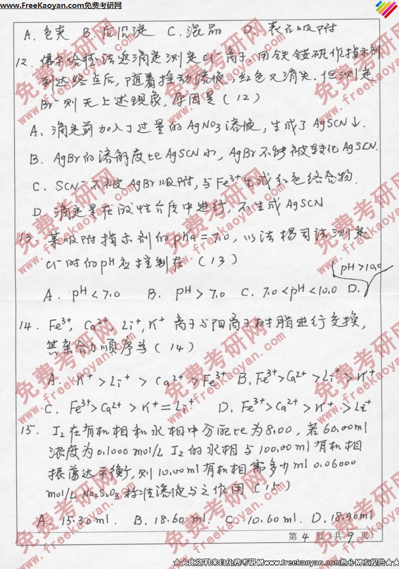 相关话题/山东师范大学 考研真题 分析化学