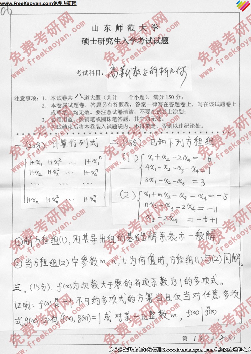 相关话题/考研真题 高等代数 山东师范大学 解析几何