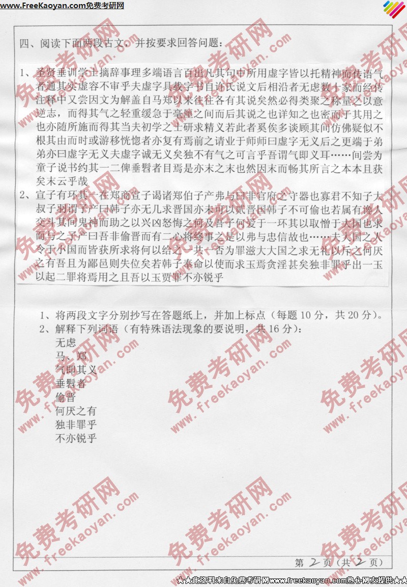 专业课考研经验 本站小编 FreeKaoyan 2018-01-23山东师范大学2006年考研真题-二外英语