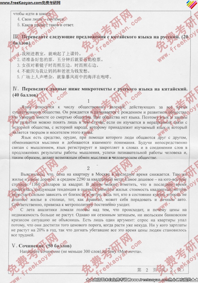 专业课考研经验 本站小编 FreeKaoyan 2018-01-23山东师范大学2006年考研真题-二外俄语