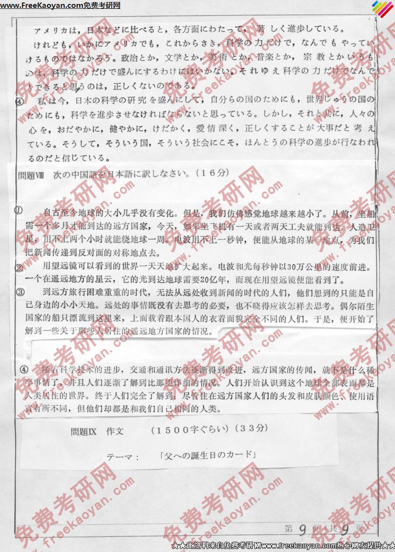 专业课考研经验 本站小编 FreeKaoyan 2018-01-23山东师范大学2006年考研真题-二外日语
