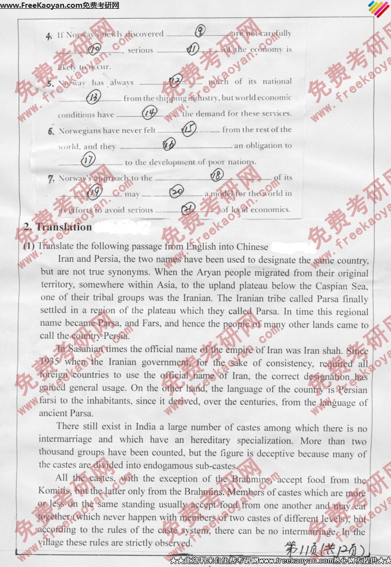 专业课考研经验 本站小编 FreeKaoyan 2018-01-23山东师范大学2006年考研真题-二外英语