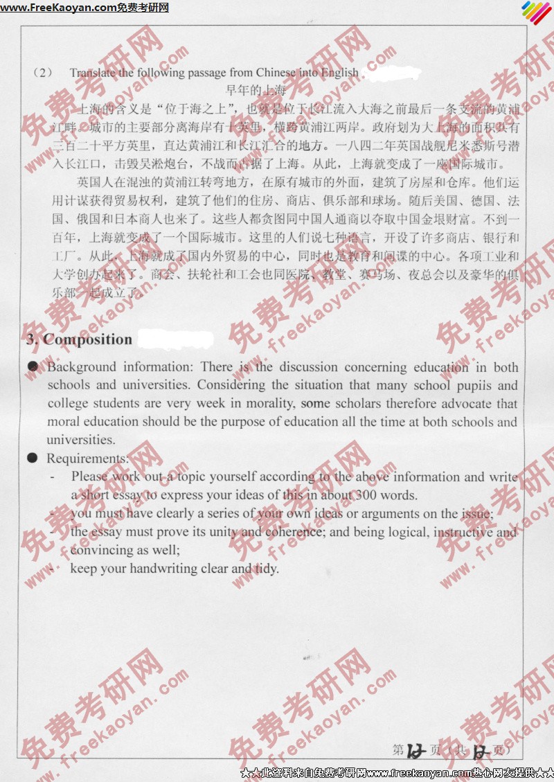 专业课考研经验 本站小编 FreeKaoyan 2018-01-23山东师范大学2006年考研真题-二外英语