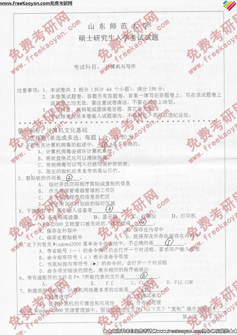 山东师范大学2006年考研真题-计算机与写作