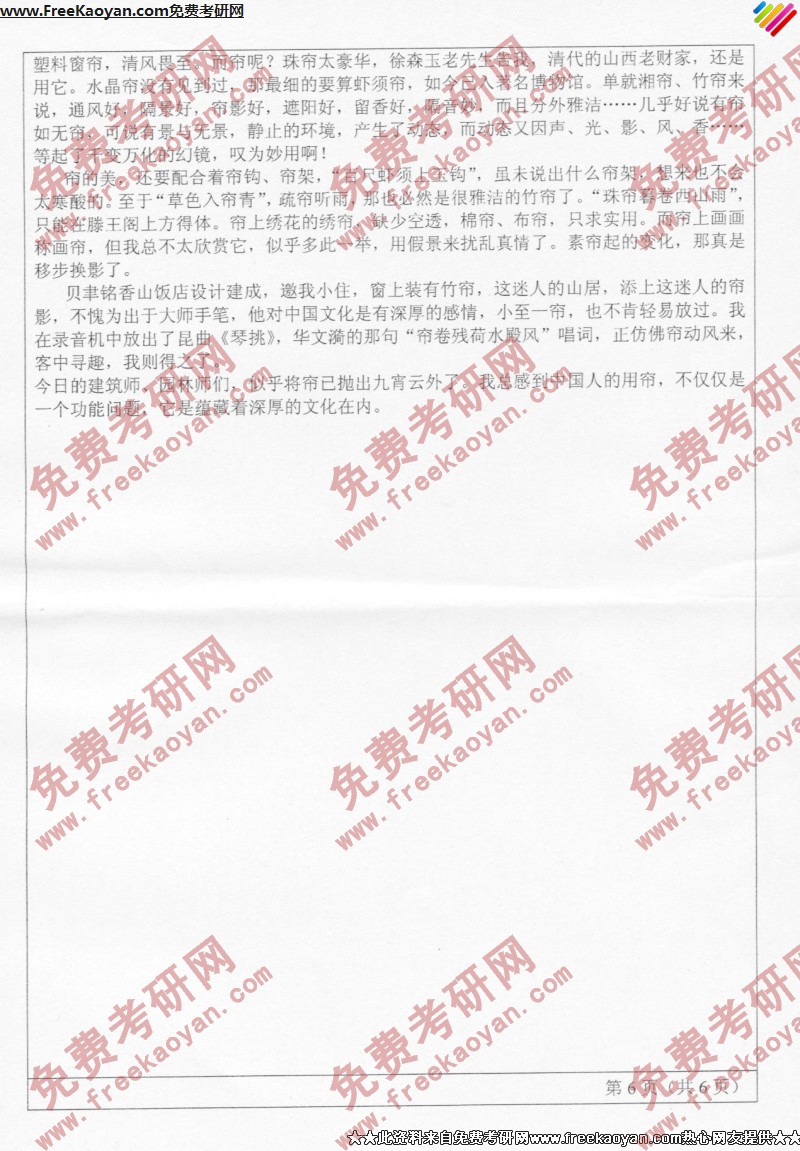 专业课考研经验 本站小编 FreeKaoyan 2018-01-23山东师范大学2006年考研真题-古文阅读