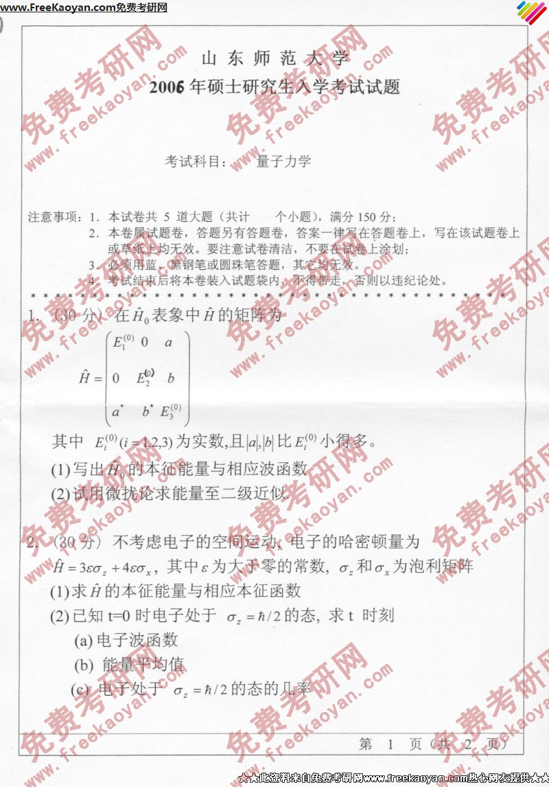 专业课考研经验 本站小编 FreeKaoyan 2018-01-23山东师范大学2006年考研真题-高等数学A