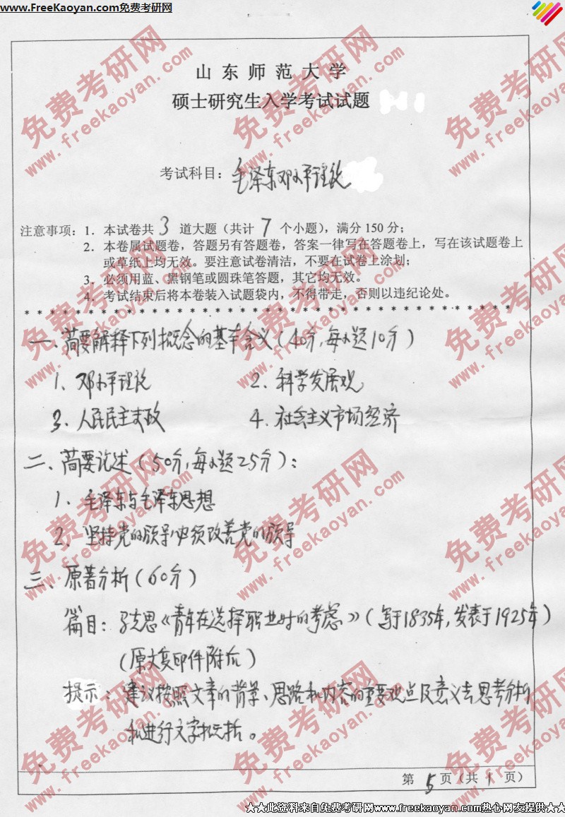 相关话题/考研真题 山东师范大学 毛泽东思想 邓小平理论