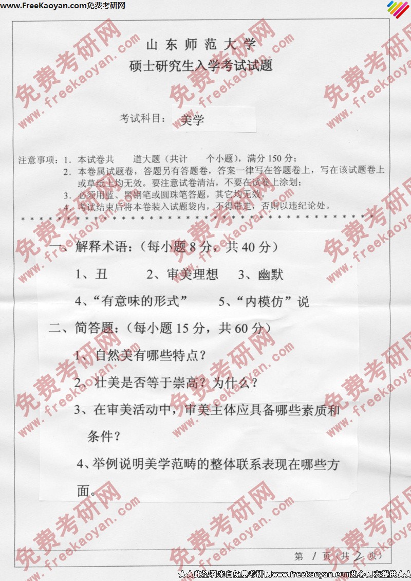 相关话题/山东师范大学 考研真题 美学