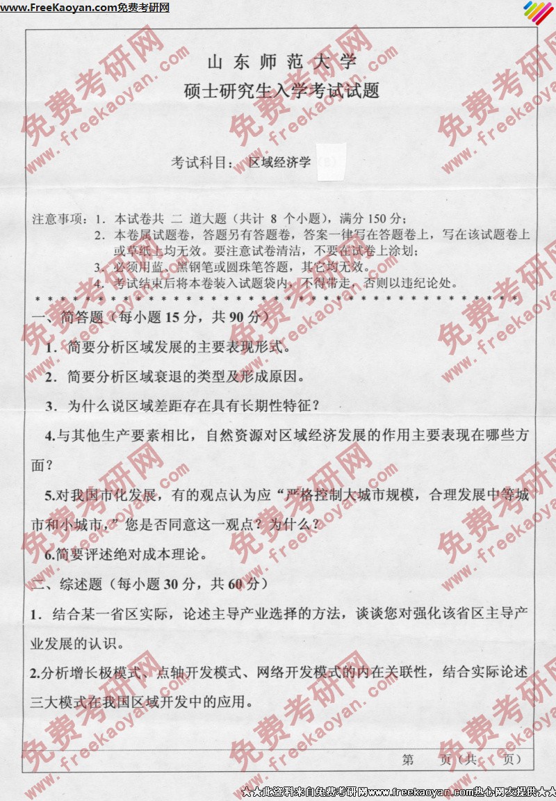 专业课考研经验 本站小编 FreeKaoyan 2018-01-23山东师范大学2006年考研真题-经济地理
