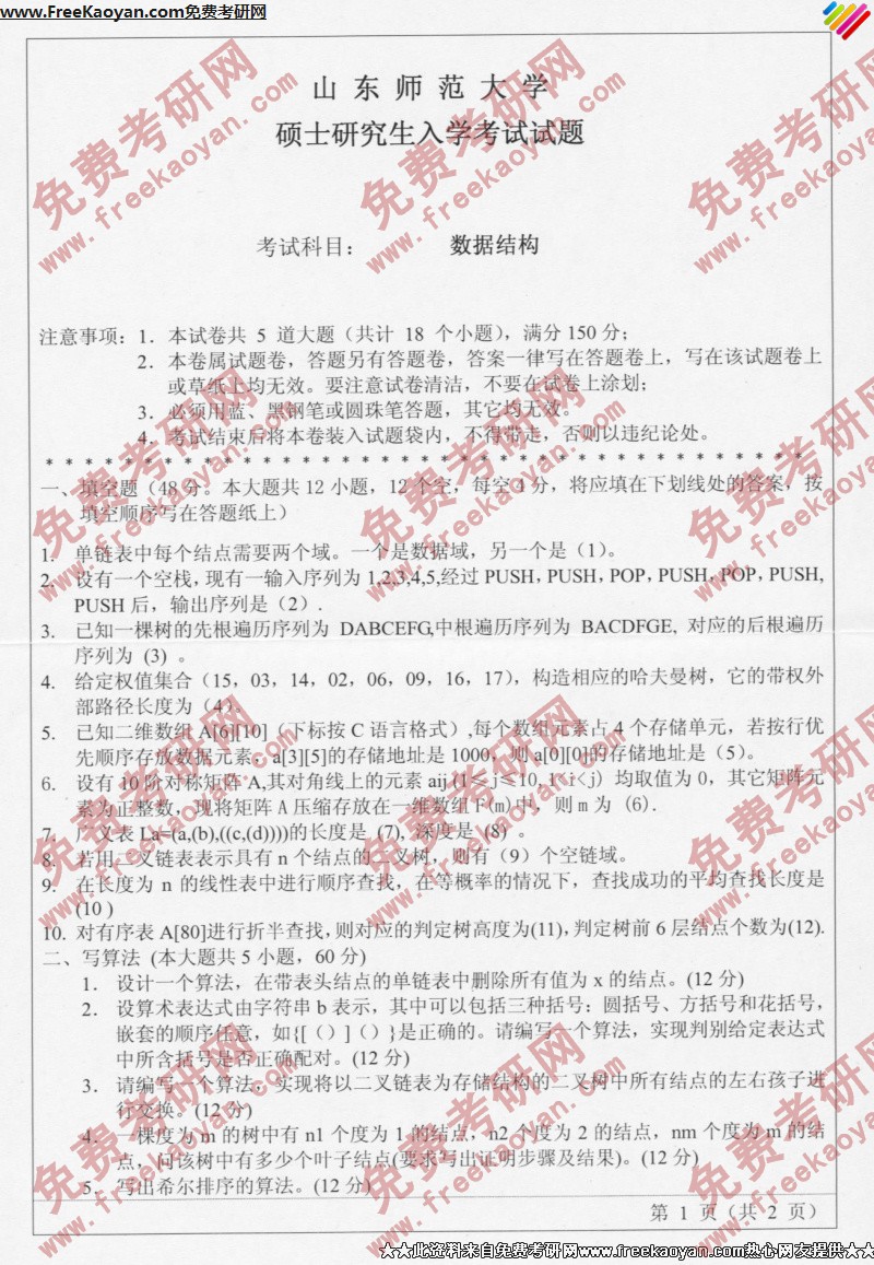 专业课考研经验 本站小编 FreeKaoyan 2018-01-23山东师范大学2006年考研真题-软件设计