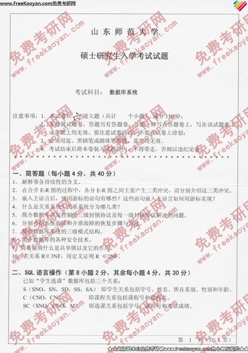 专业课考研经验 本站小编 FreeKaoyan 2018-01-23山东师范大学2006年考研真题-软件设计