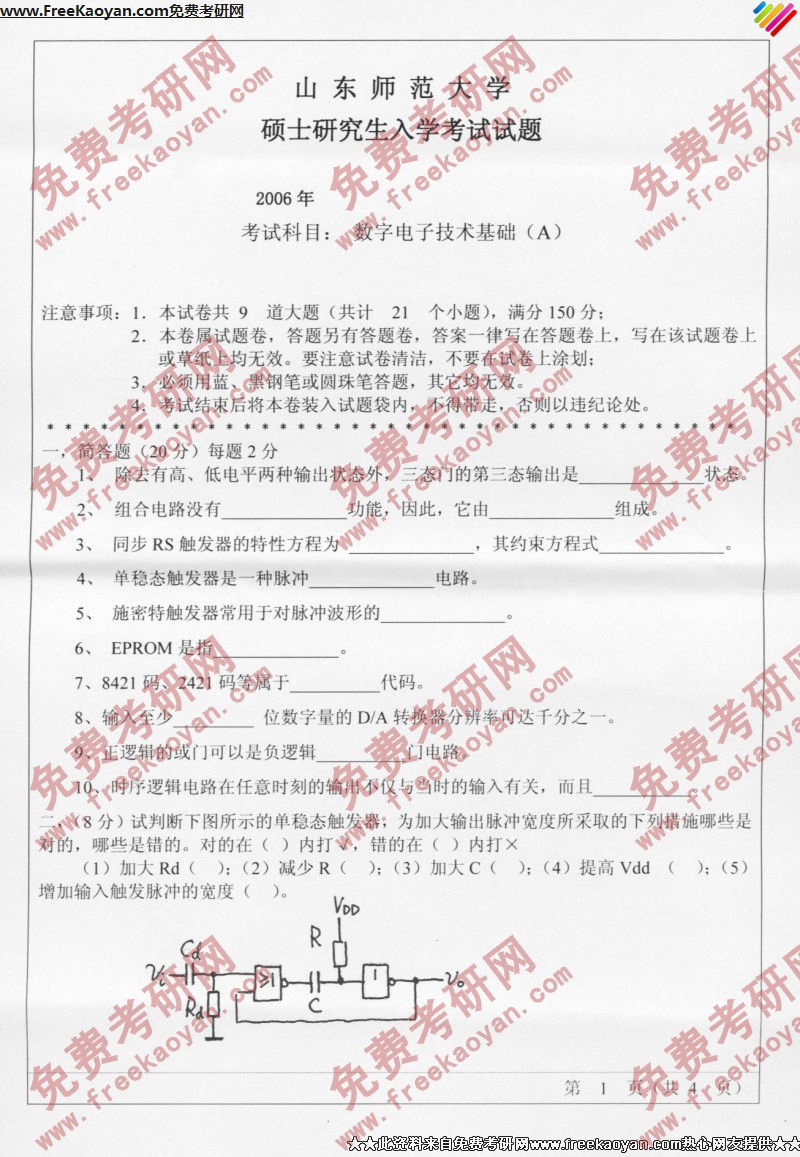相关话题/考研真题 山东师范大学 电子技术基础 数字