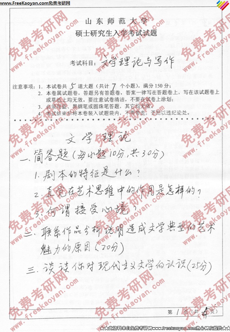 相关话题/考研真题 山东师范大学 写作 文学理论