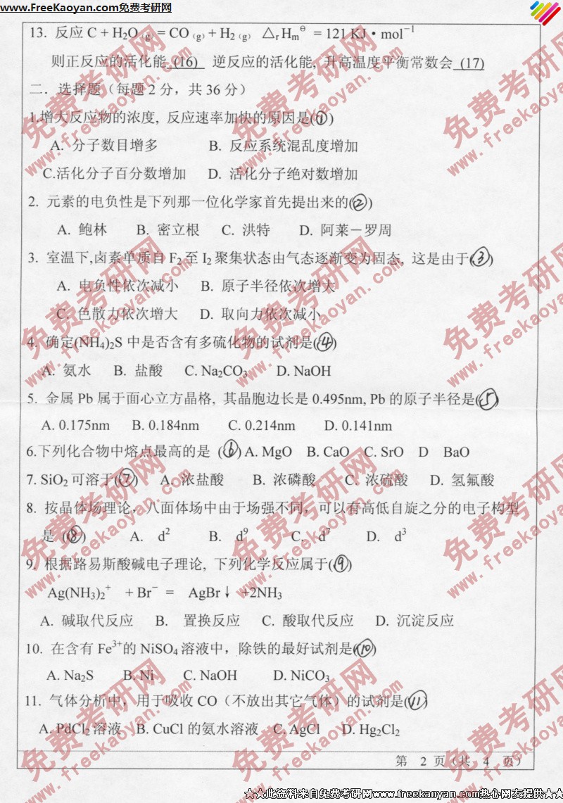 相关话题/山东师范大学 考研真题 无机化学