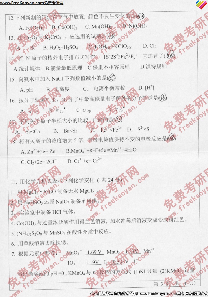 专业课考研经验 本站小编 FreeKaoyan 2018-01-23山东师范大学2006年考研真题-生物化学