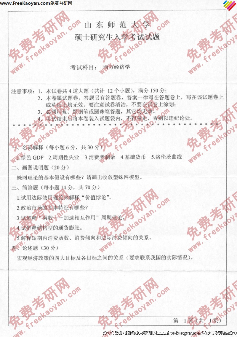 专业课考研经验 本站小编 FreeKaoyan 2018-01-23山东师范大学2006年考研真题-区域经济学