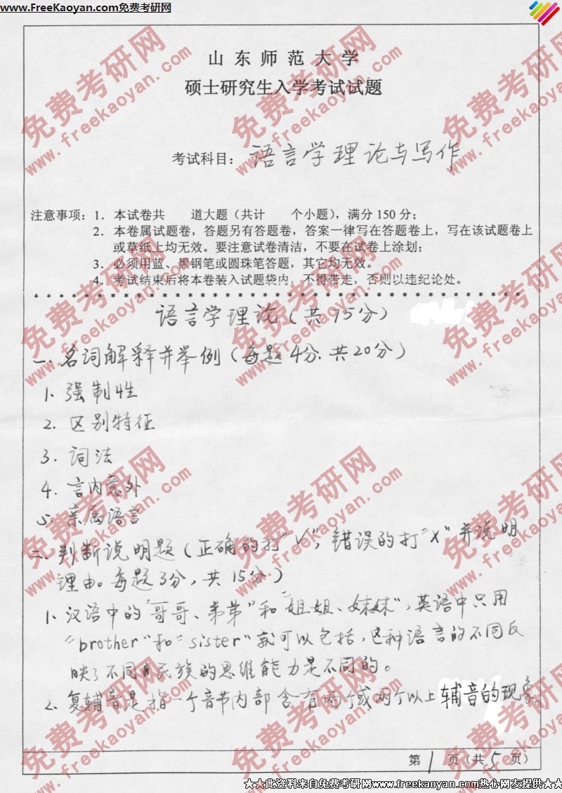 专业课考研经验 本站小编 FreeKaoyan 2018-01-23山东师范大学2006年考研真题-文学理论与写作